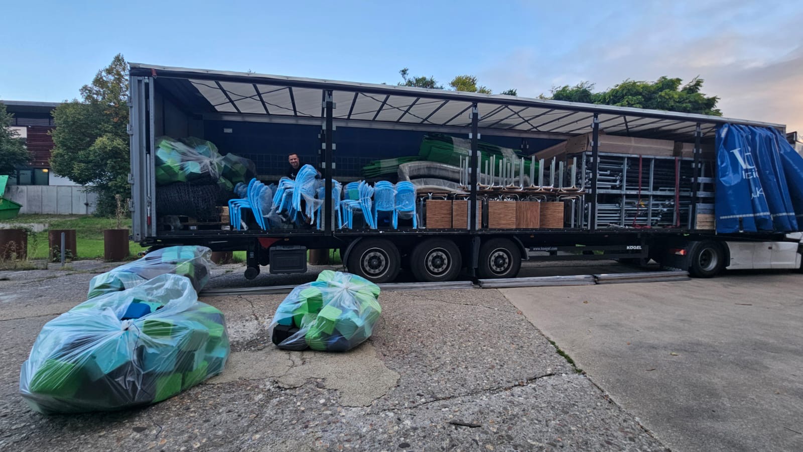 • Die ersten Säulen unserer Halle leuchten jetzt in unserem Firmenblau. 🎨